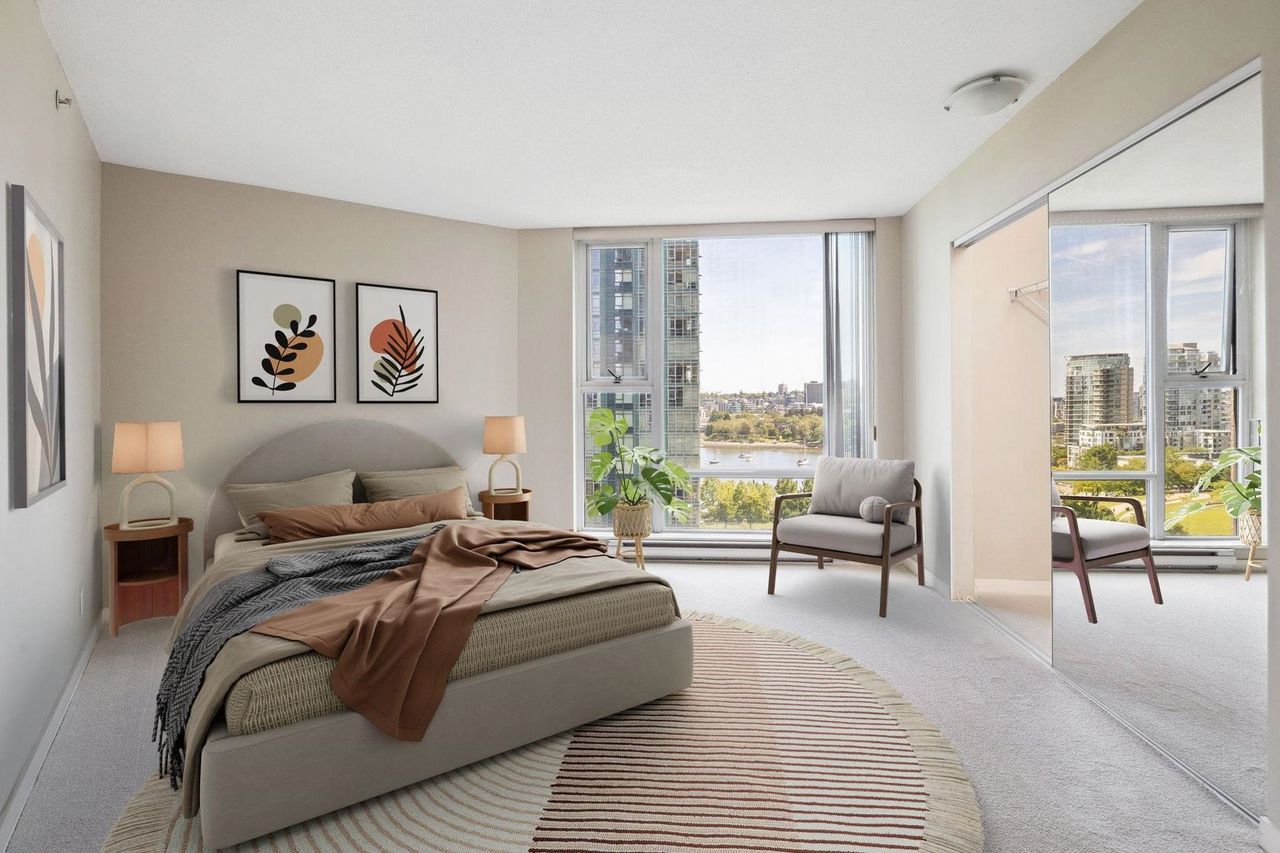 A beautiful 2 Bed + Den & 2 Bath unit in Park West 1! This corner bright unit overlooks an impressive panoramic false creek & park view. New flooring throughout including carpets, floor-to-ceiling windows, lots of natural sunlight & a private balcony for your enjoyment. Fantastic location - Centrally located in Yaletown, close to incredible restaurants, shopping & entertainment, plus the seawall and parks are right outside your front door! The building offers concierge service & Club Viva which includes an: indoor pool, steam room, large gym, guest suites, lounge/theatre room & squash courts. 1 parking. Book your showings now!