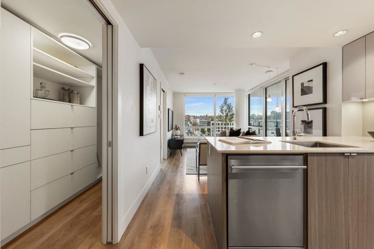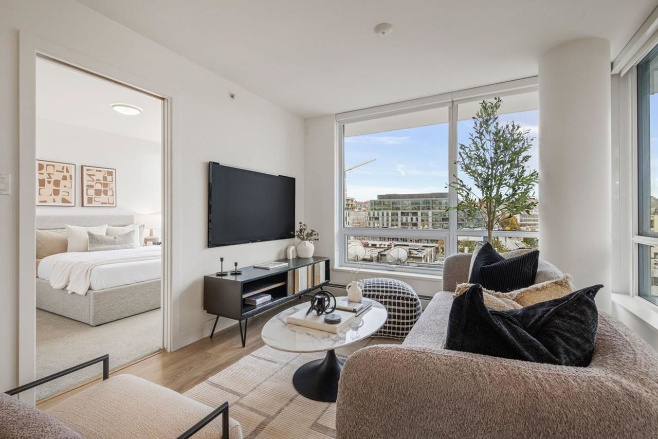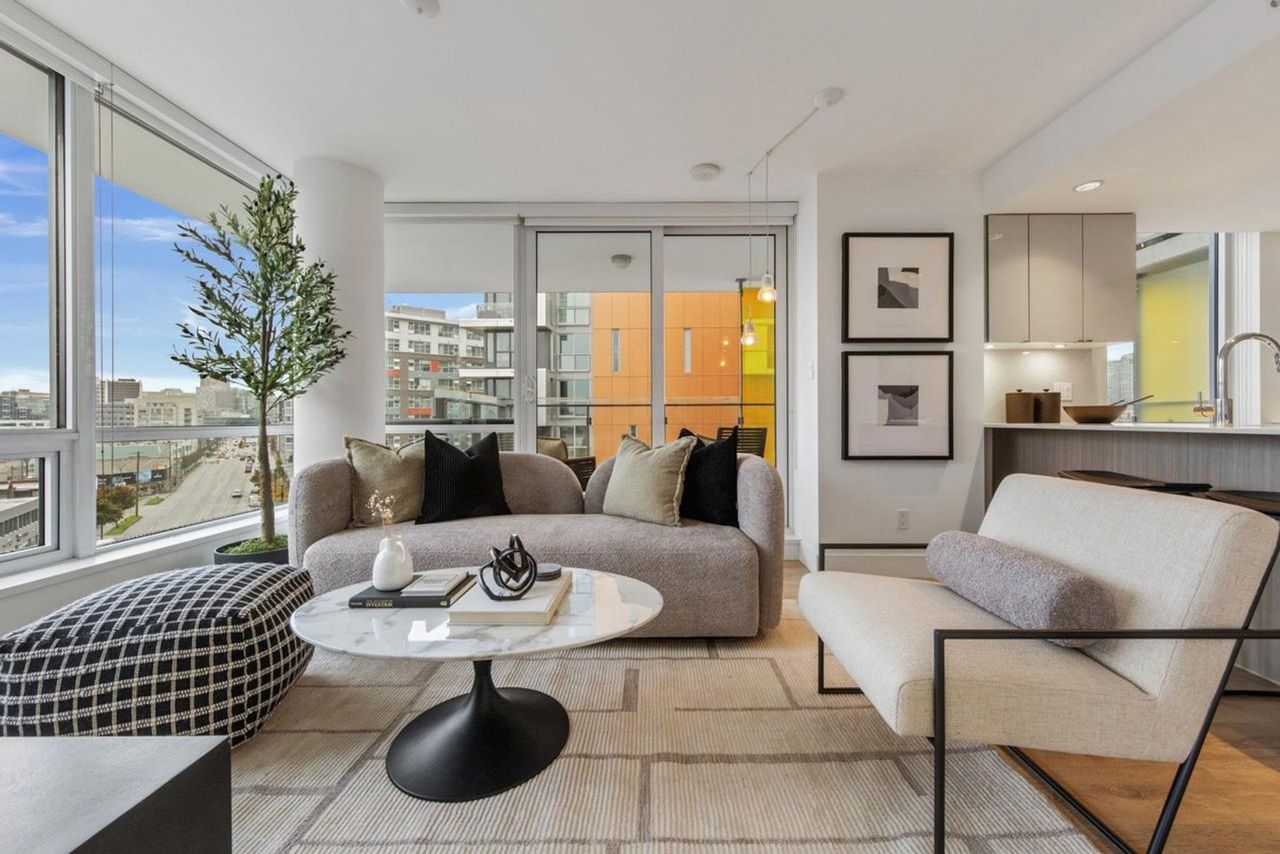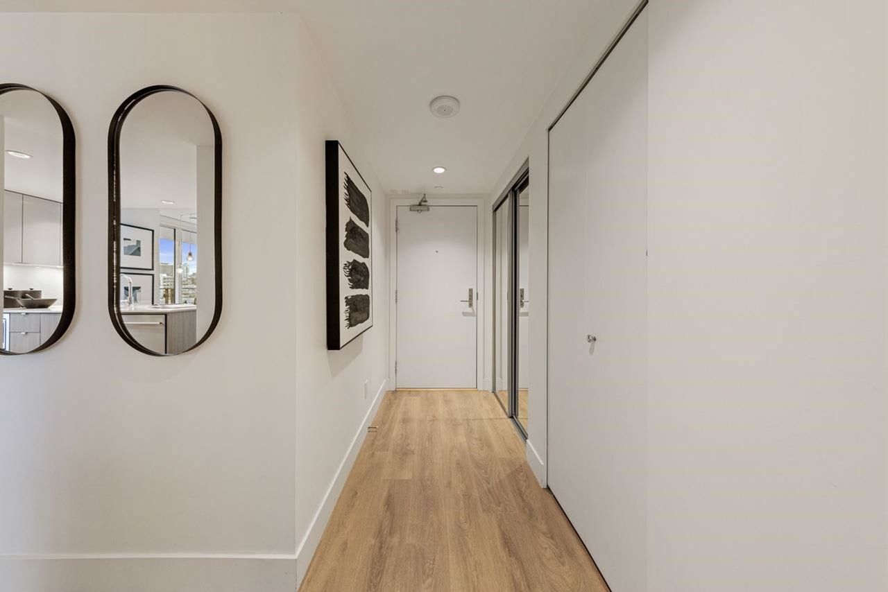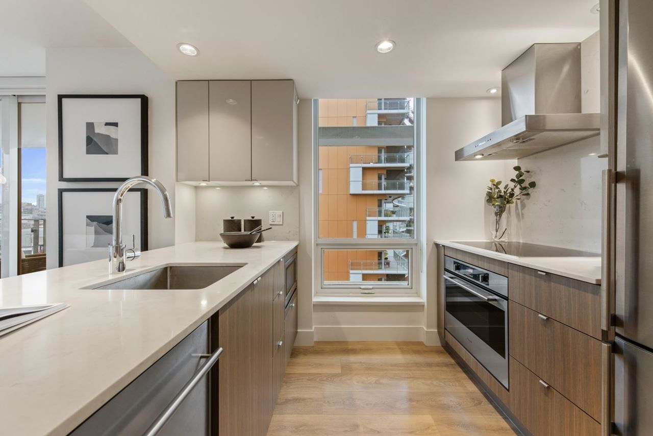 This southwest CORNER unit is arguably one of the best 1 bedroom layouts in the building! Floor-to-ceiling windows flood the space with natural light, offering views from every angle. The open concept layout is designed with no wasted space and features a contemporary kitchen with integrated appliances, an induction cooktop, and quartz countertops. Thoughtfully designed custom built-ins in the flex space maximize storage. Sit out on the covered balcony and enjoy the incredible city and park views. Located in the heart of the Olympic Village, you’re steps from some of the best restaurants, shops, groceries, transit, seawall, and more. 1 parking and 3 storage lockers included. Airbnb friendly. Call to schedule a private viewing! OPEN HOUSE Sat & Sun 1:00 - 3:00pm
