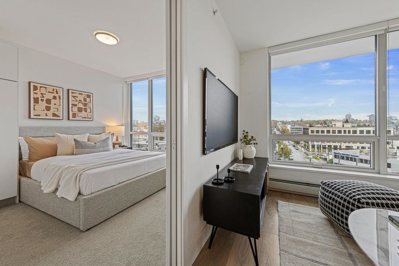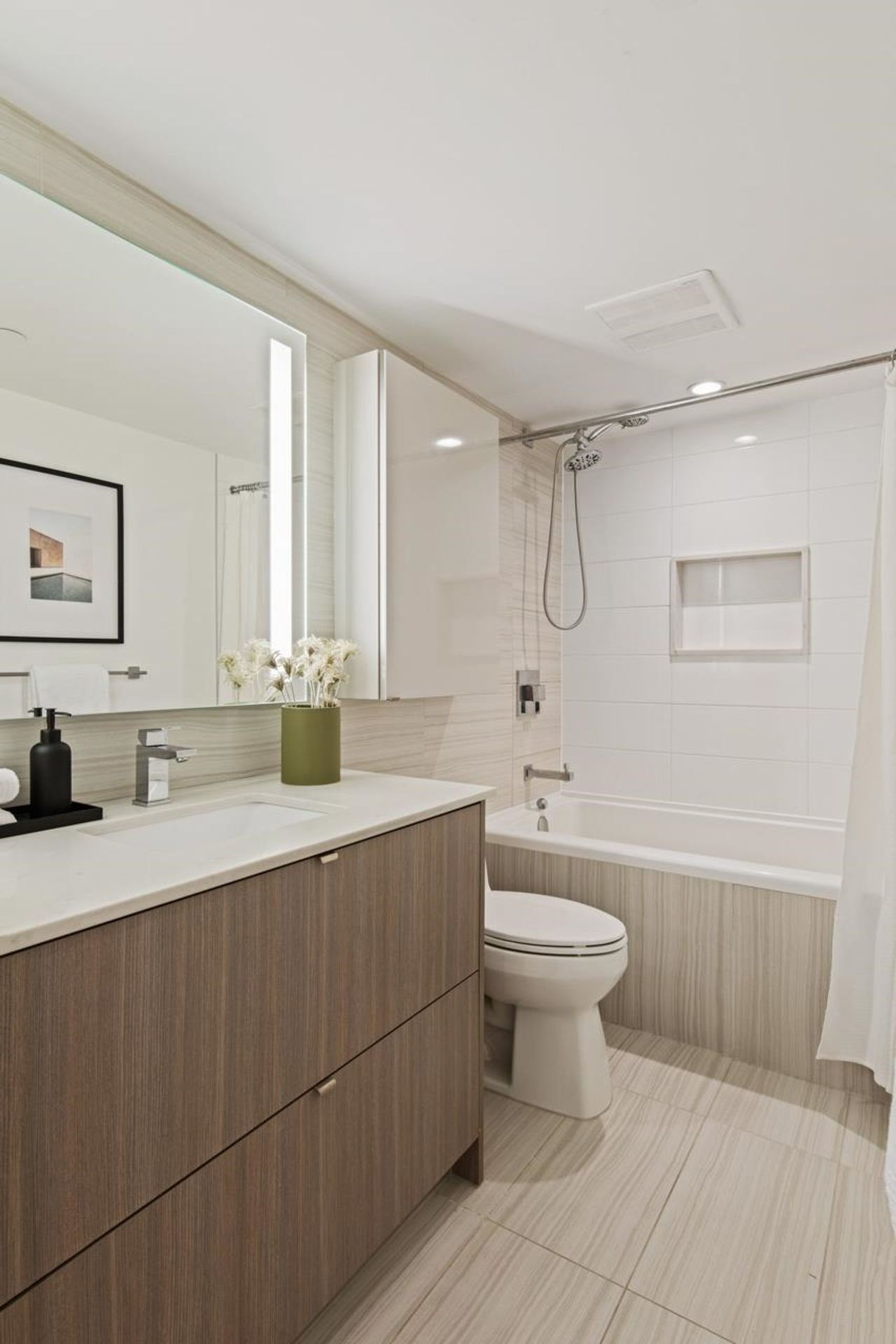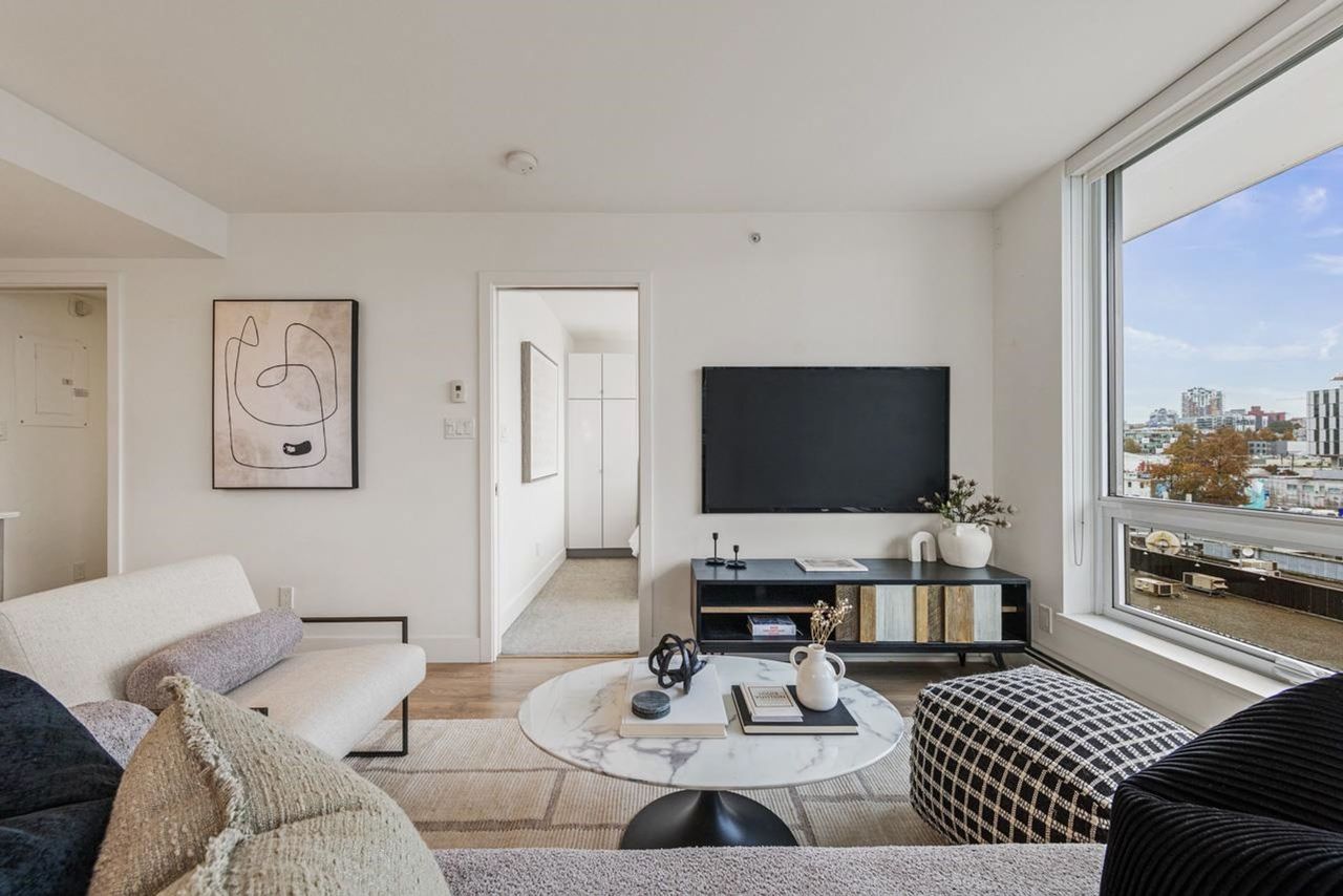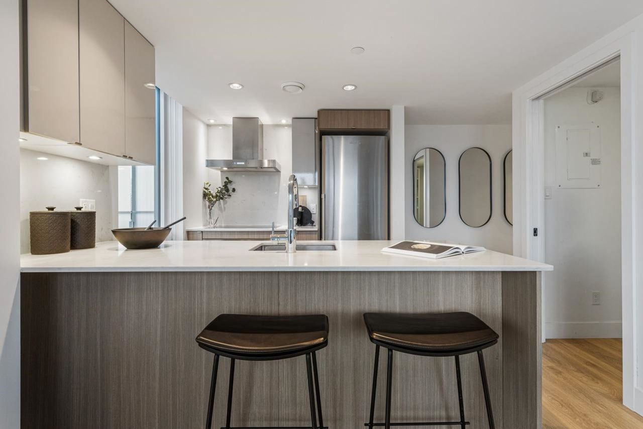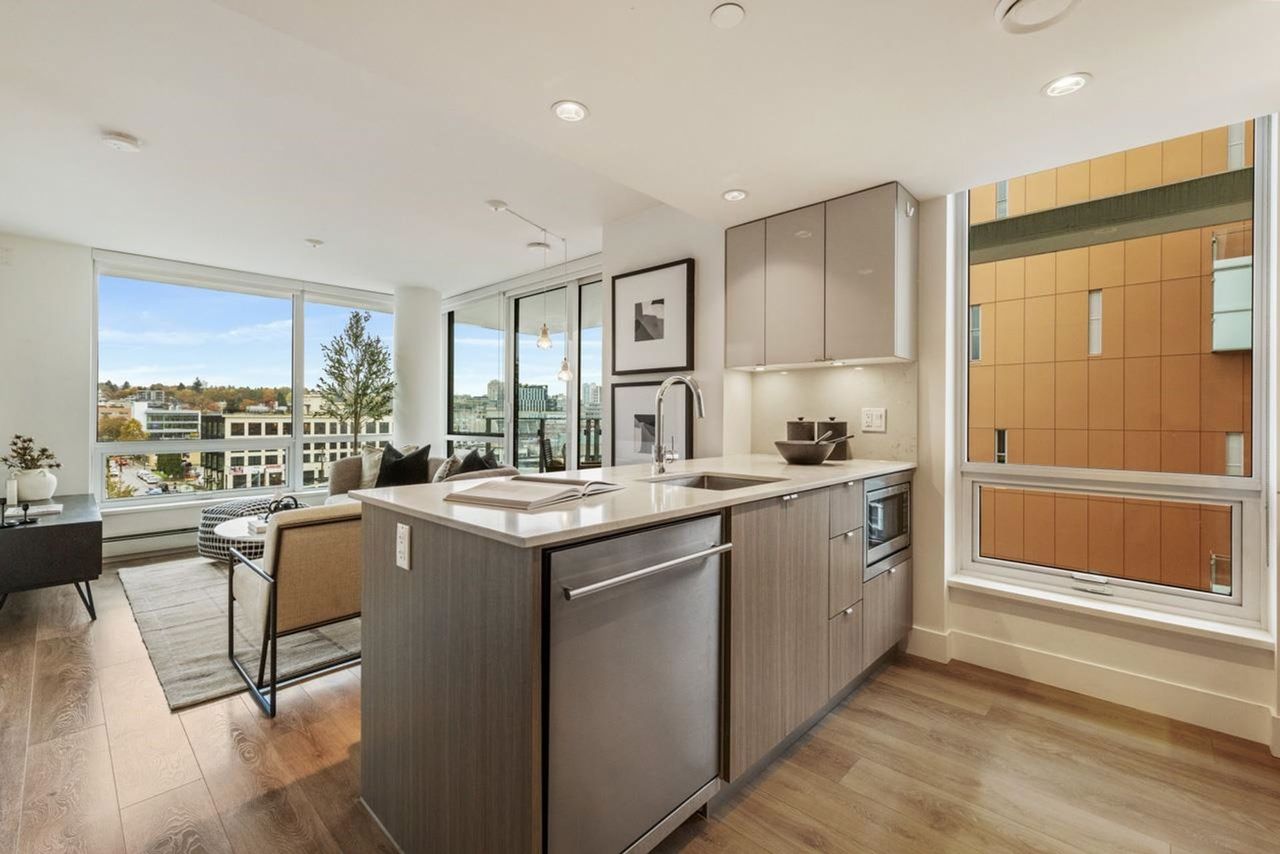 This southwest CORNER unit is arguably one of the best 1 bedroom layouts in the building! Floor-to-ceiling windows flood the space with natural light, offering views from every angle. The open concept layout is designed with no wasted space and features a contemporary kitchen with integrated appliances, an induction cooktop, and quartz countertops. Thoughtfully designed custom built-ins in the flex space maximize storage. Sit out on the covered balcony and enjoy the incredible city and park views. Located in the heart of the Olympic Village, you’re steps from some of the best restaurants, shops, groceries, transit, seawall, and more. 1 parking and 3 storage lockers included. Airbnb friendly. Call to schedule a private viewing! OPEN HOUSE Sat & Sun 1:00 - 3:00pm