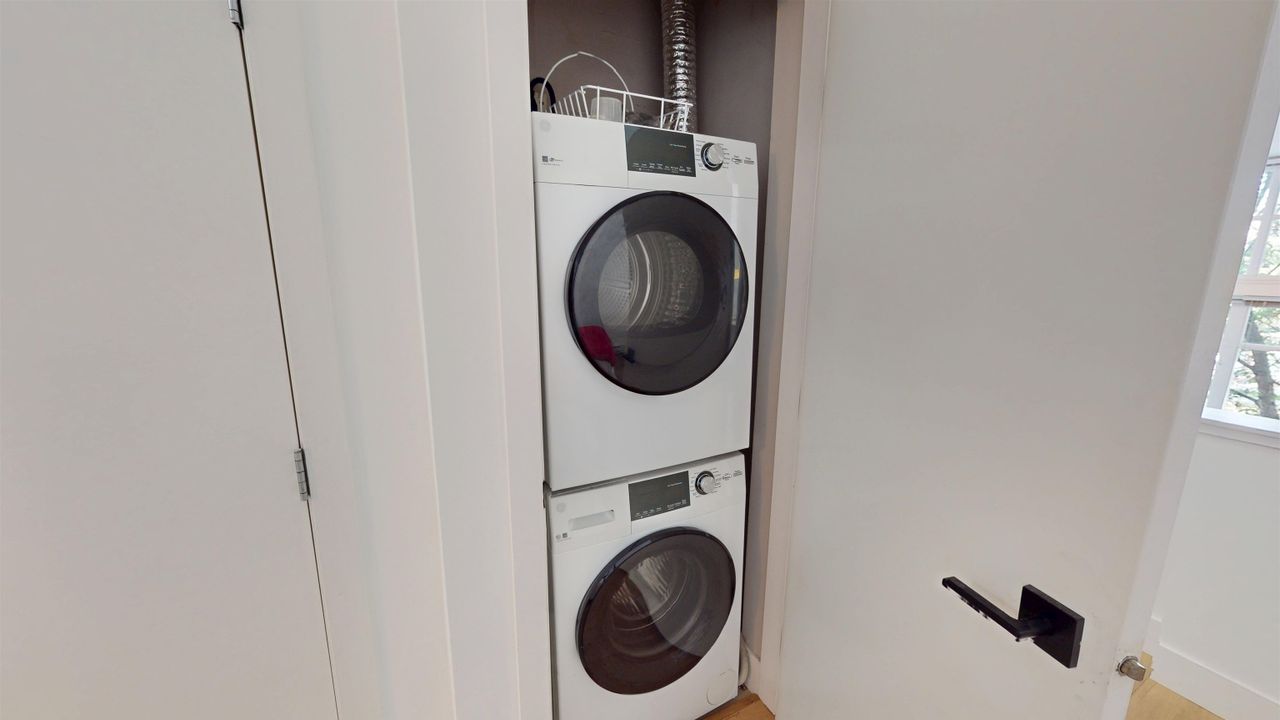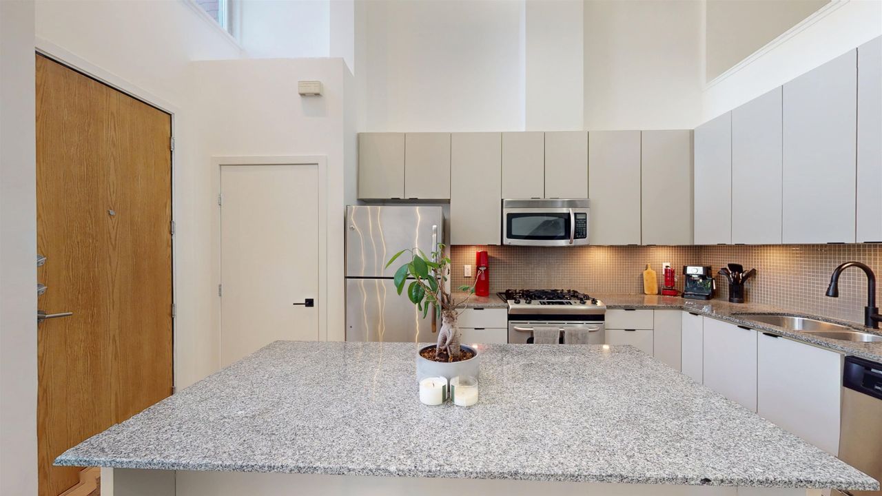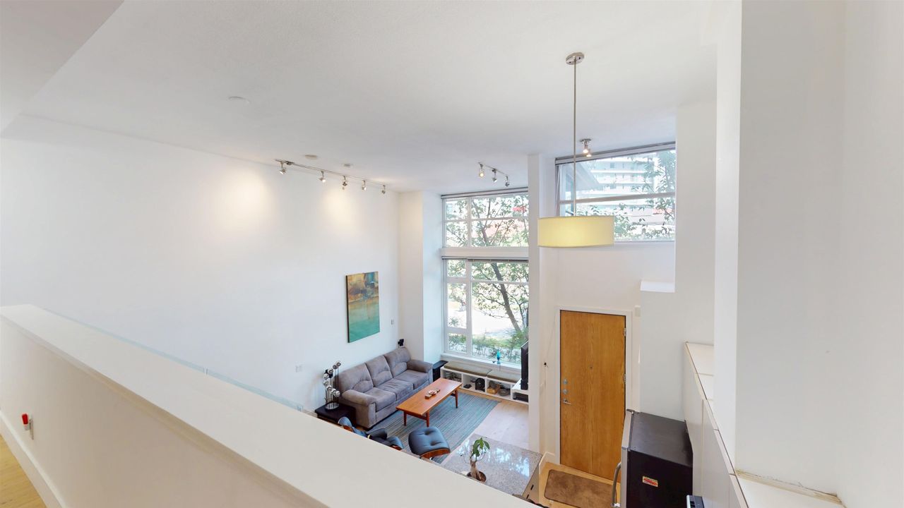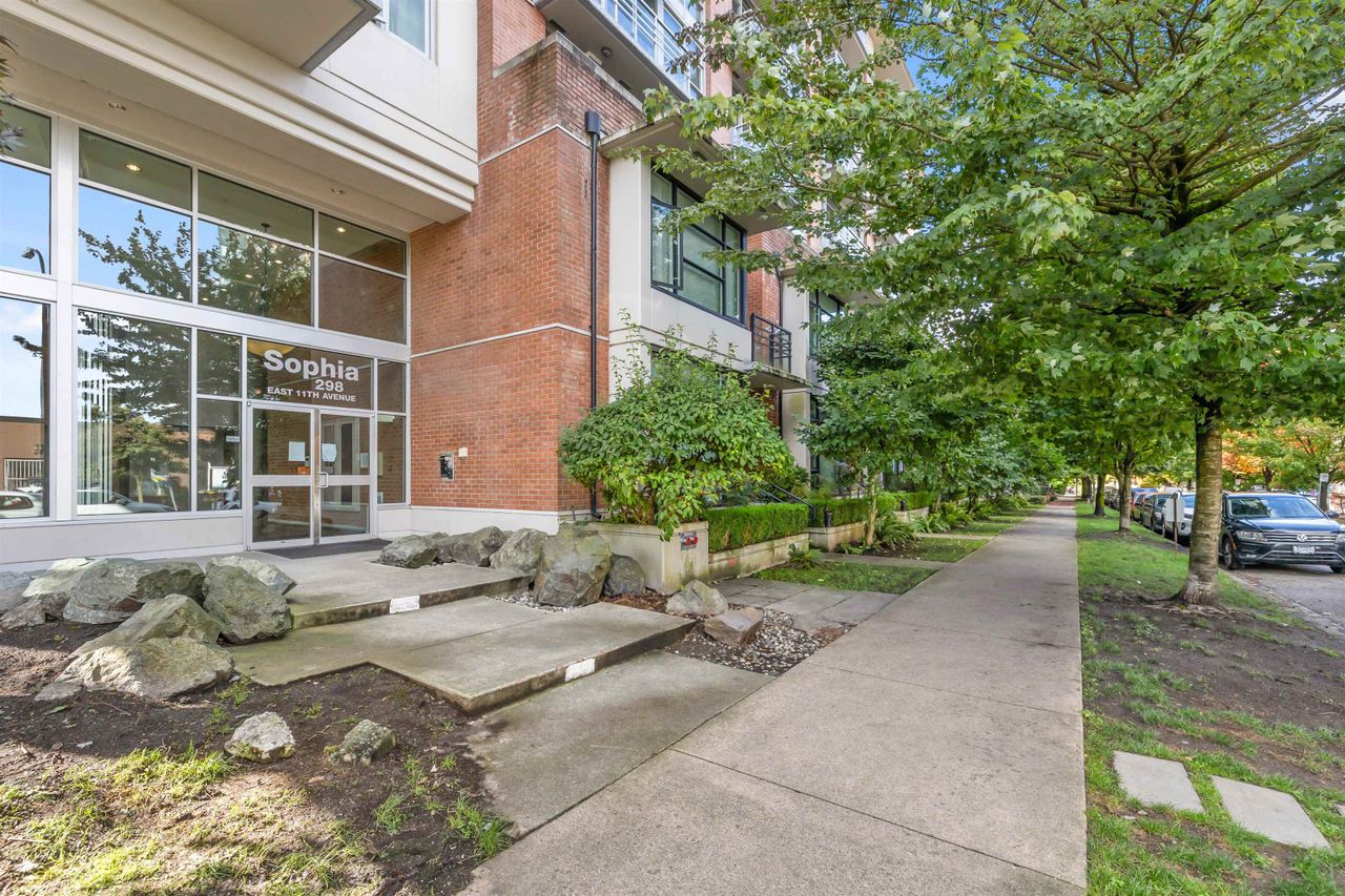 Walk-up Loft at The Sophia! This 818 sq. ft. end-unit townhome features soaring 16 ft ceilings, full glass frontage, and a private street entry. Freshly painted with wide-plank brushed oak floors, paralam stairs with 13 mil thick glass railings, and a full kitchen with granite counters, GE stainless steel appliances, gas stove, and island. The loft level offers a second entry and in-unit GE laundry. Solid concrete construction means quiet living, plus secure parking, storage, and access to a lounge and rooftop terrace with city views. Just steps to Main Street shops, breweries, the new Broadway train, and minutes to downtown and the future St. Paul’s Hospital. A rare home that feels more like a house than a condo.