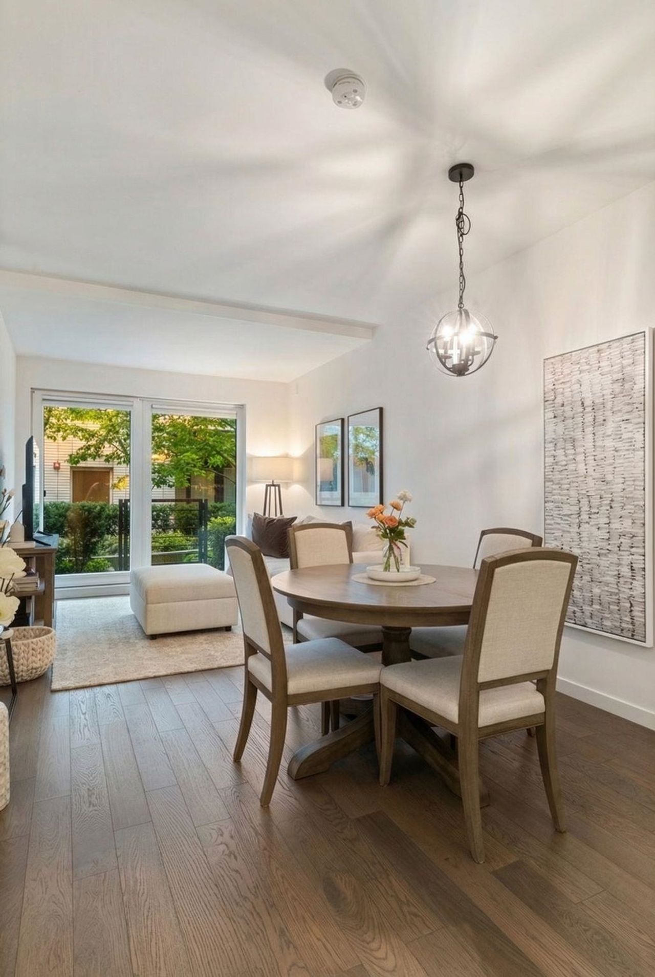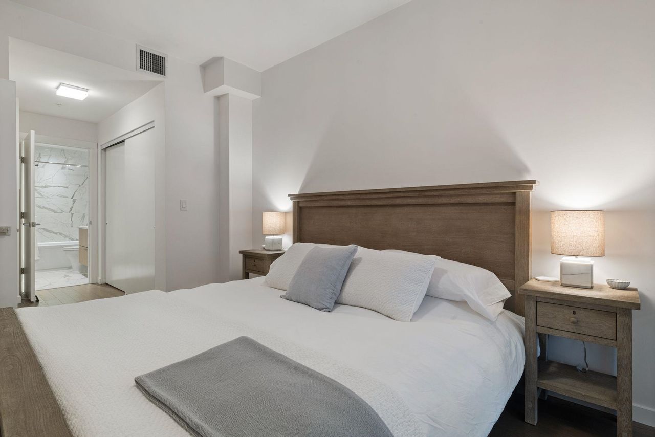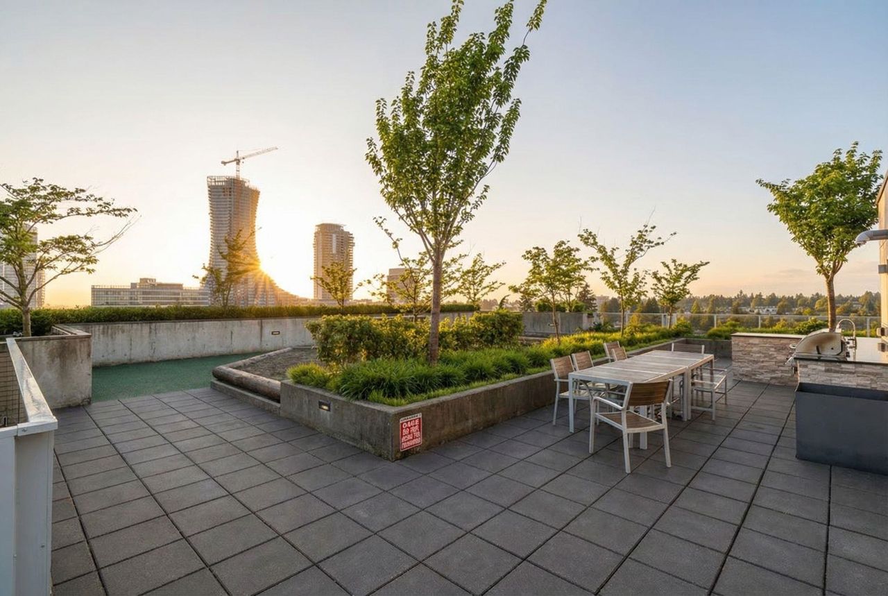 Welcome to Henry, a boutique concrete building in he heart of Cambie Corridor, just steps from Queen Elizabeth Park. The well-designed 1 bed + den offers over 700 sqft of living space on the QUIET SIDE of the building. The functional layout include engineered hardwood floors, high ceilings, A/C, and a spacious covered patio perfect for year-round use. The kitchen is equipped with premium Miele appliances, a five-burner gas cooktop, and marble backsplash, white the spa-inspired bathroom features floor-to-ceiling marble-style tile and a deep soaker tub. 1 parking stall and 1 storage locker. Amenities include a meeting room and a rooftop Terrance with BBQ and city views. Unbeatable location just steps to Oakridge Park, Canada Line, parks, shops, and restaurants. OPEN HOUSE: Sat/ Sun 2-4